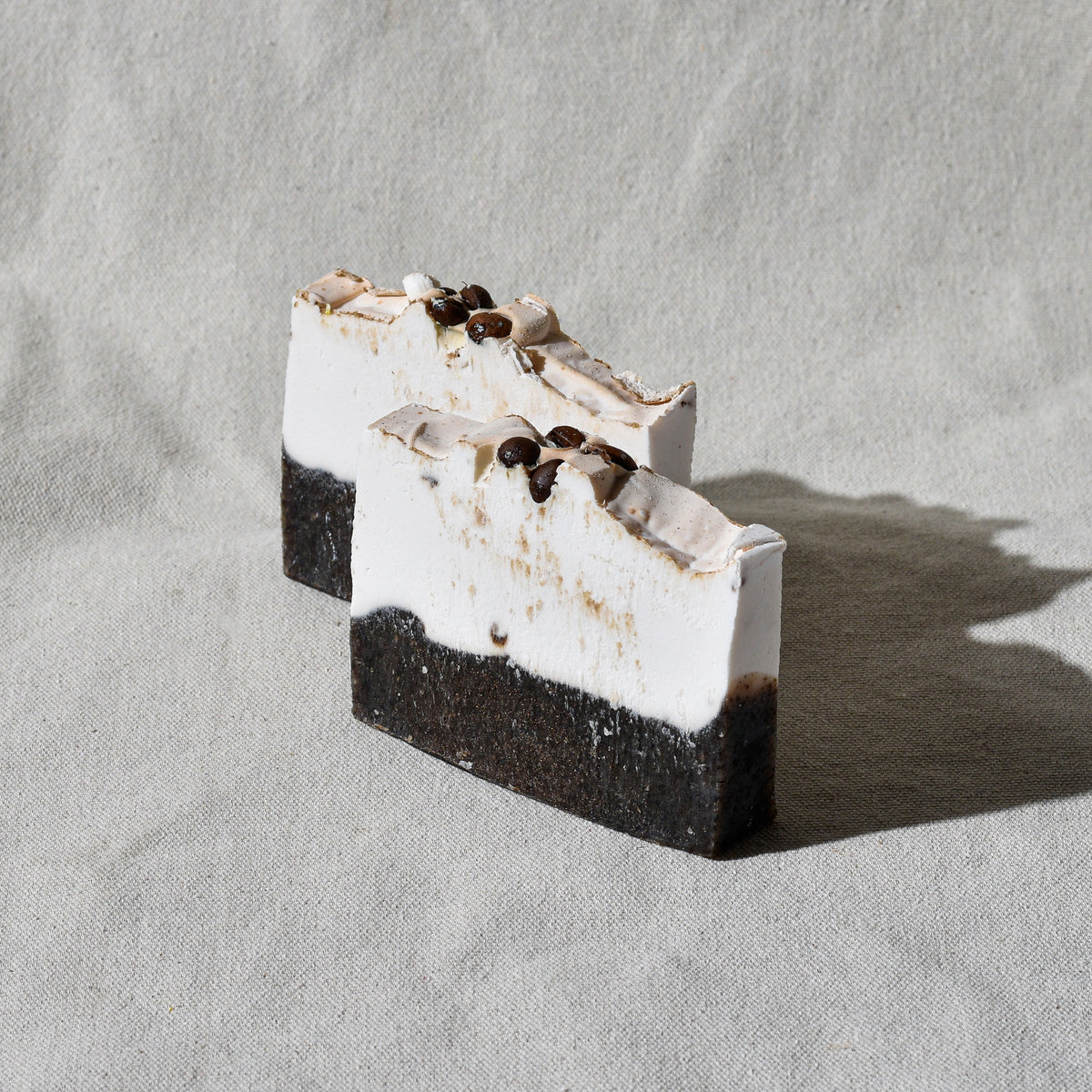 DESCRIPTION - Indulge in the rich fusion of our Raw Coffee Beans & Vanilla Cold Process Soap Bar. Crafted with care, it combines the invigorating essence of raw coffee beans with the comforting aroma of vanilla essential oil. Coconut oil and shea butter add deep hydration, leaving your skin supple and moisturized. This soap bar, crafted using the cold process method, offers a luxurious and aromatic cleanse. It exfoliates gently, revealing fresh and radiant skin. Elevate your daily self-care routine with this natural and rejuvenating soap, providing the perfect balance of exfoliation and nourishment, and unveiling revitalized, beautifully scented skin with every use.